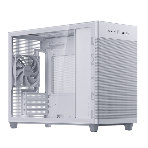- علبة كمبيوتر ASUS Prime AP201 بزجاج مقسّى، ميكرو ATX - أبيض