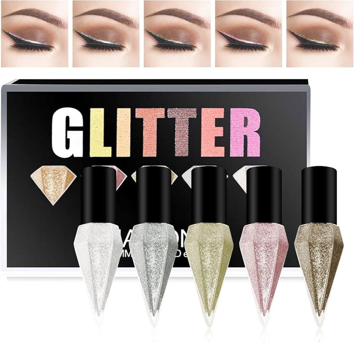 مجموعة من 5 أقلام تحديد العيون السائلة بريليانت دايموند - قلم تمييز لامع فائق النحافة، مقاوم للماء ويدوم طويلاً لمكياج العيون..