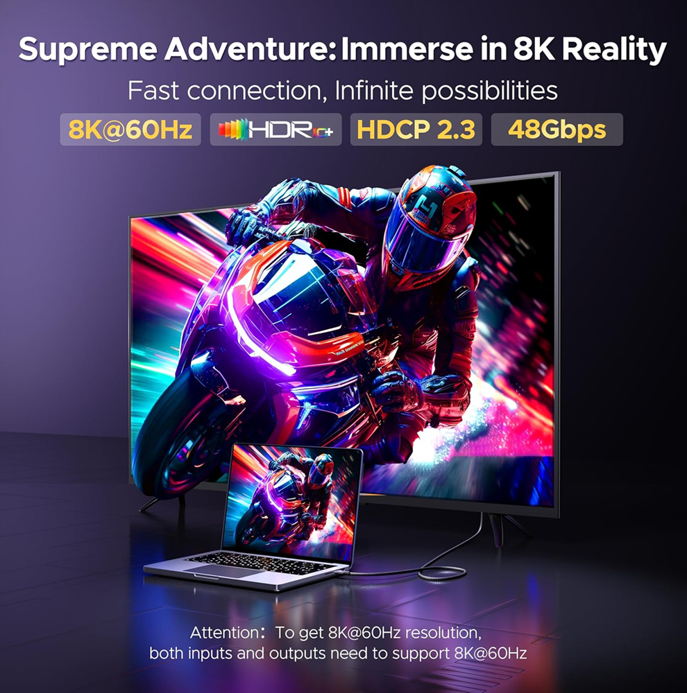 - كابل Warrky CH21 من USB-C إلى HDMI 2.1 بدقة 8K بمعدل 60Hz بطول 1.8 متر – رمادي فضائي