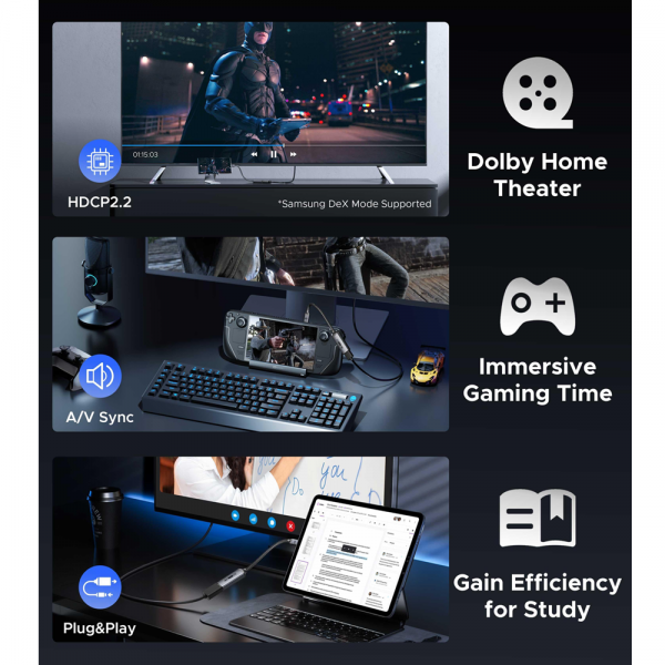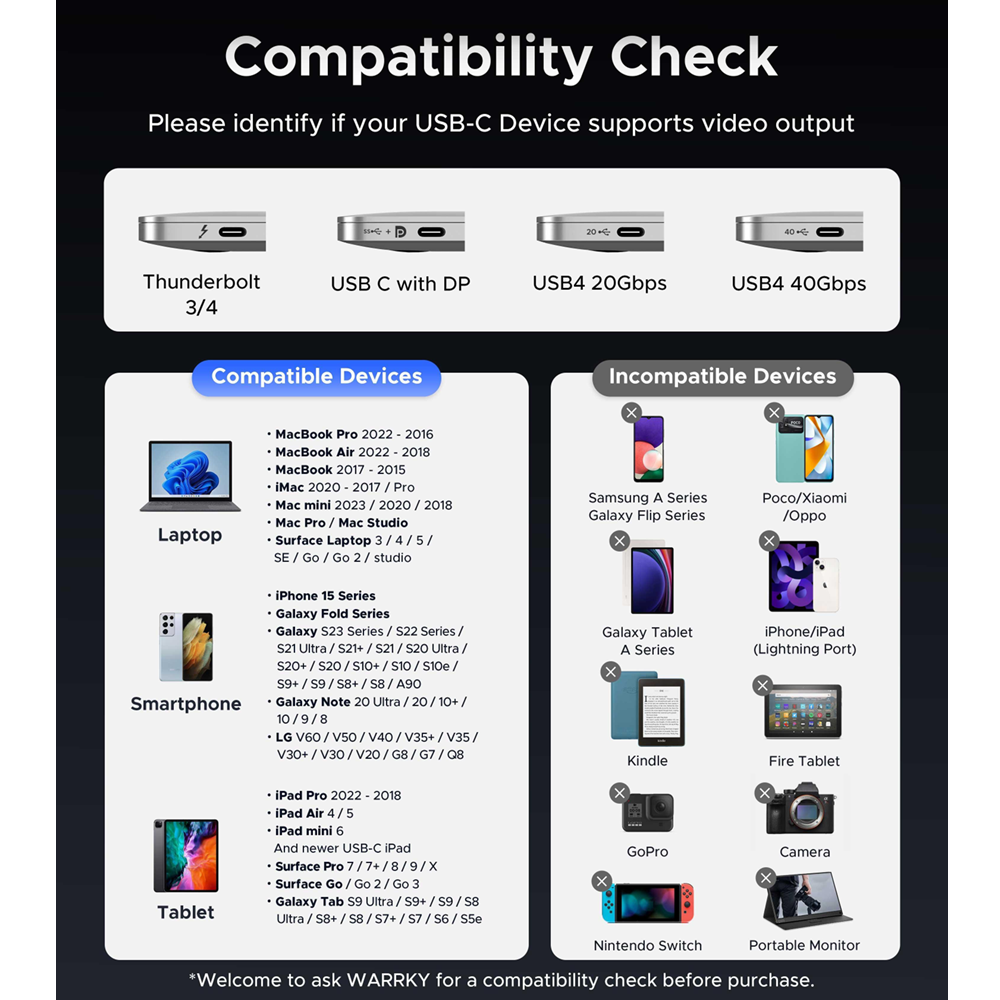 Warrky دقة 4K بتردد 60 هرتز من USB-C إلى HDMI