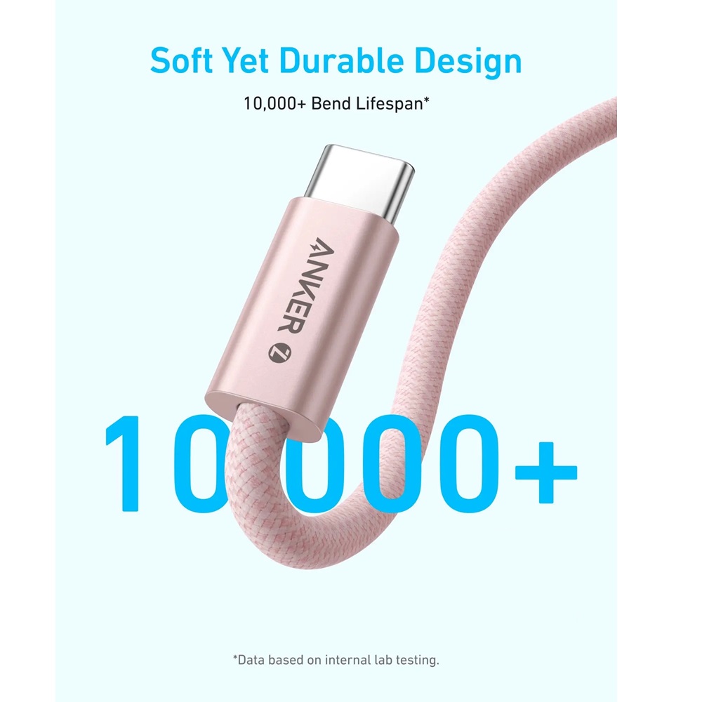 - كابل الشحن السريع المضفّر Anker 8060 Zolo من USB-C إلى USB-C بقدرة 240 واط بطول 3.3 قدم (1 متر) – أبيض، A8060H21