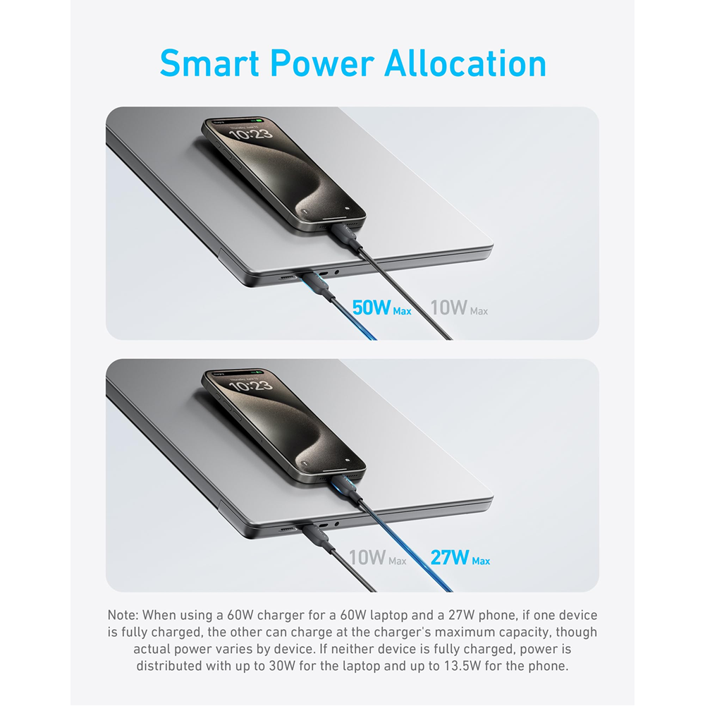 Anker كابل شحن 2 في 1 منفذ واحد، شحن بقدرة قصوى 140 واط