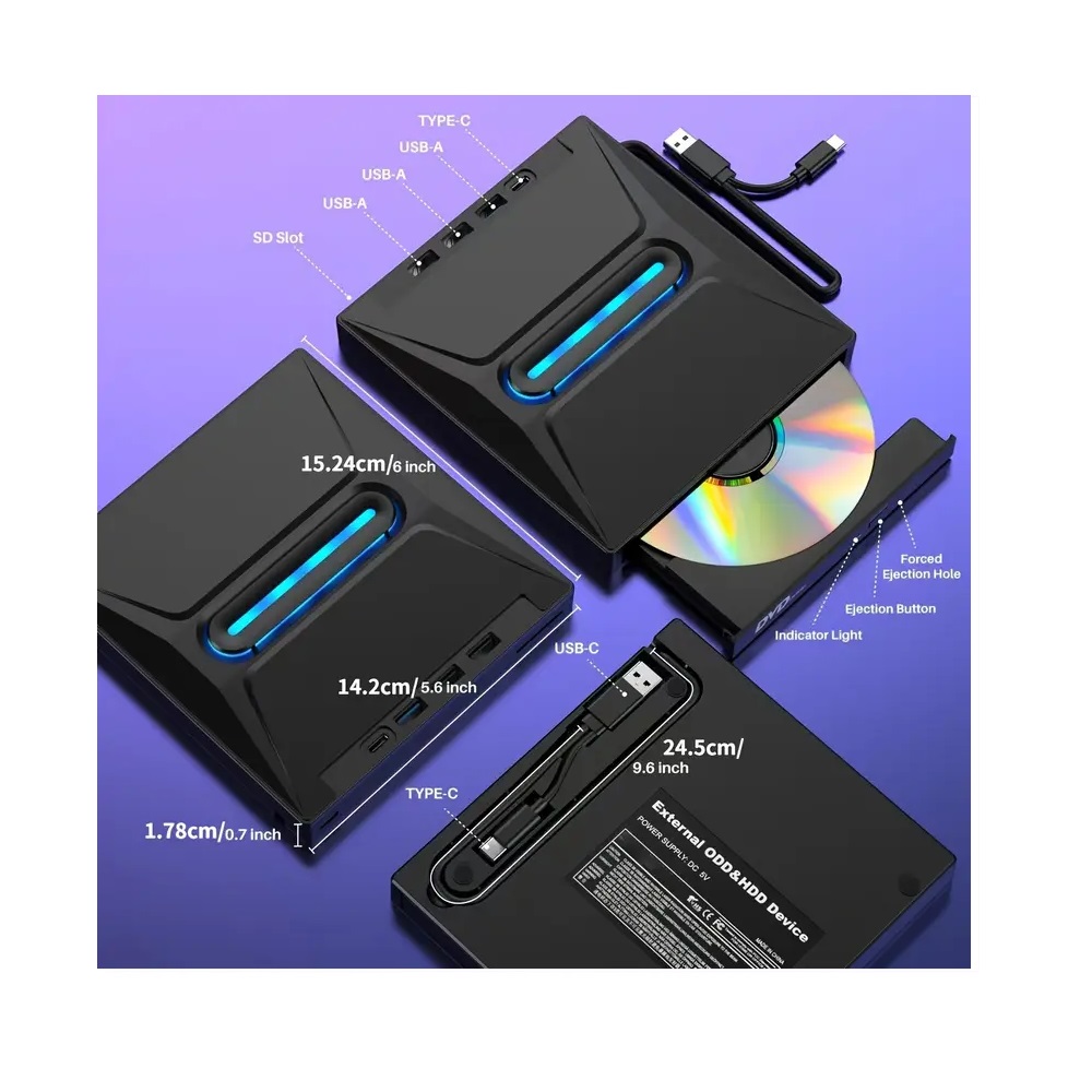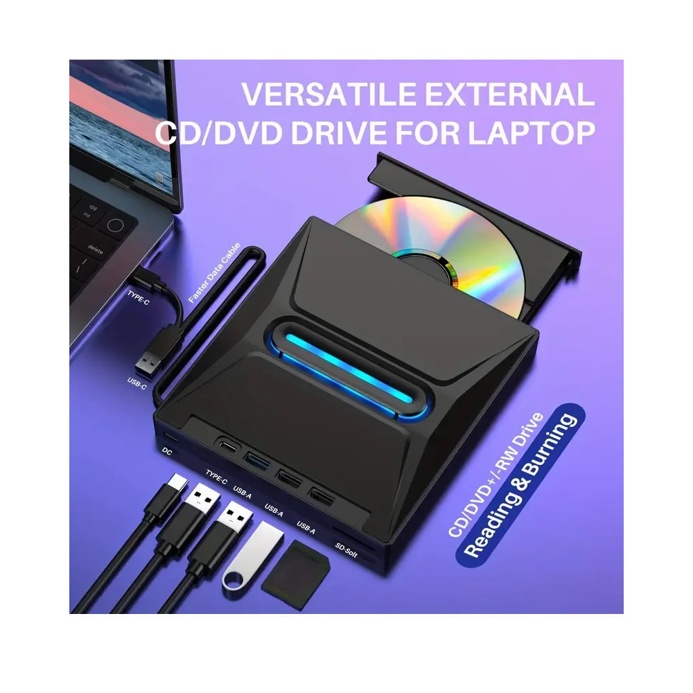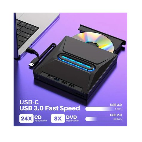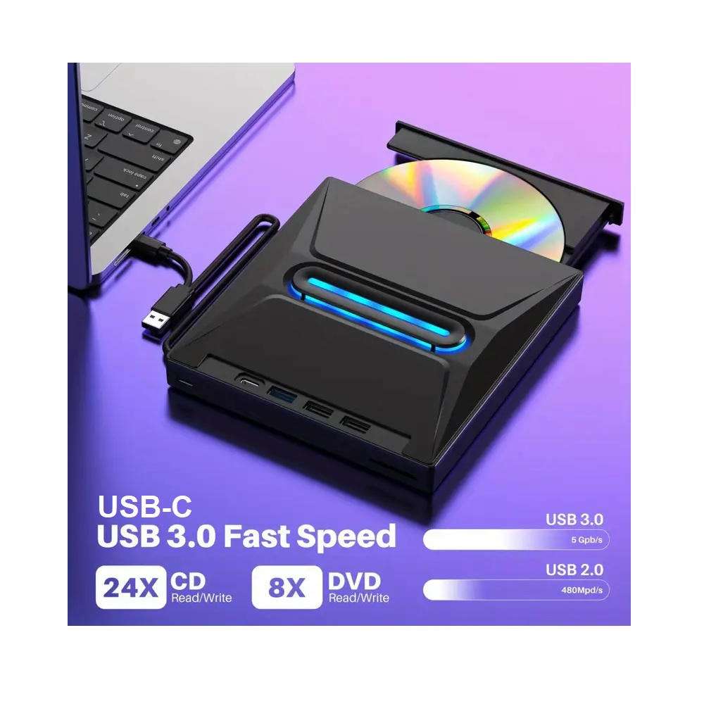 - Portable Optical Drive External DVD Writer Dual Port USB-A 3.0 / USB-C