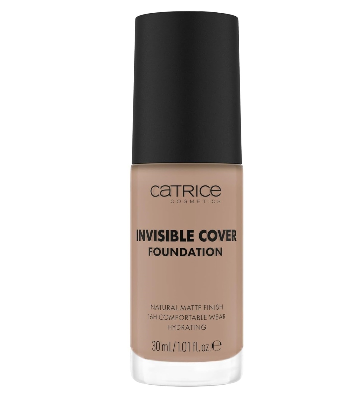 يوفر كريم الأساس Catrice Invisible Cover بدرجة اللون 030N بشرة طبيعية تدوم طويلاً ويوفر راحة عالية عند الارتداء. يوفر هذا الأساس بلون محايد مع درجات لونية متوازنة لمسة نهائية طبيعية وغير لامعة. تحتوي التركيبة على حمض الهيالورونيك والصبار، اللذين يرطبان ويغذيان البشرة. الأساس غير كوميدوغينيك، مما يعني أنه لا يسد المسام. فهو مثالي للحصول على بشرة خالية من العيوب.