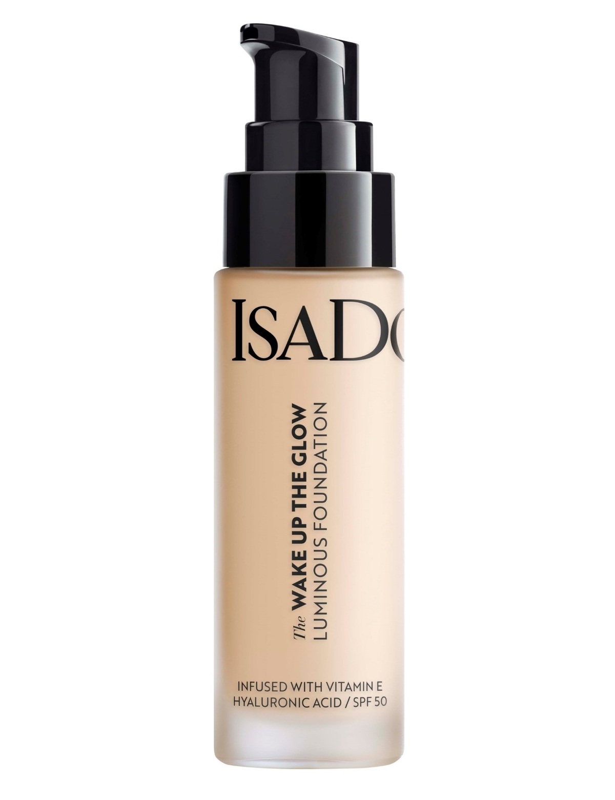 كريم أساس "ويك أب ذا غلو" من إيزادورا، ومزيج هجين من المكياج. تحتوي الأدوية على حمض الهيالورونيك وفيتامين هـ، لذا يُمكن استخدامها أثناء تناول الطعام. عامل الحماية من الشمس ٥٠ مرتفع جدًا عند البدء، ومع مُركب "إنستا-برايت"، يمنحها بشرةً مُشرقةً ونهايةً مُشرقةً. حجمه متوسط، ويزداد تدريجيًا. احصلي على بشرة مثالية بلونٍ خافي عيوب ناعم، طبيعي، أو فاتح. عند البدء باستخدامه، فعّلي مُخفي العيوب "غلو" حتى يُمكن ملؤه بالماء. فعّلي كريم أساس "غلو" والعطر، واختبريه على بشرتكِ، وهو نباتي.
