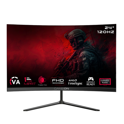 GameOn 23.8″ Curved Panel type: VA Resolution : FHD Response Time: 1ms Refresh Rate: 120Hz Console Compatible: HDMI 2.1