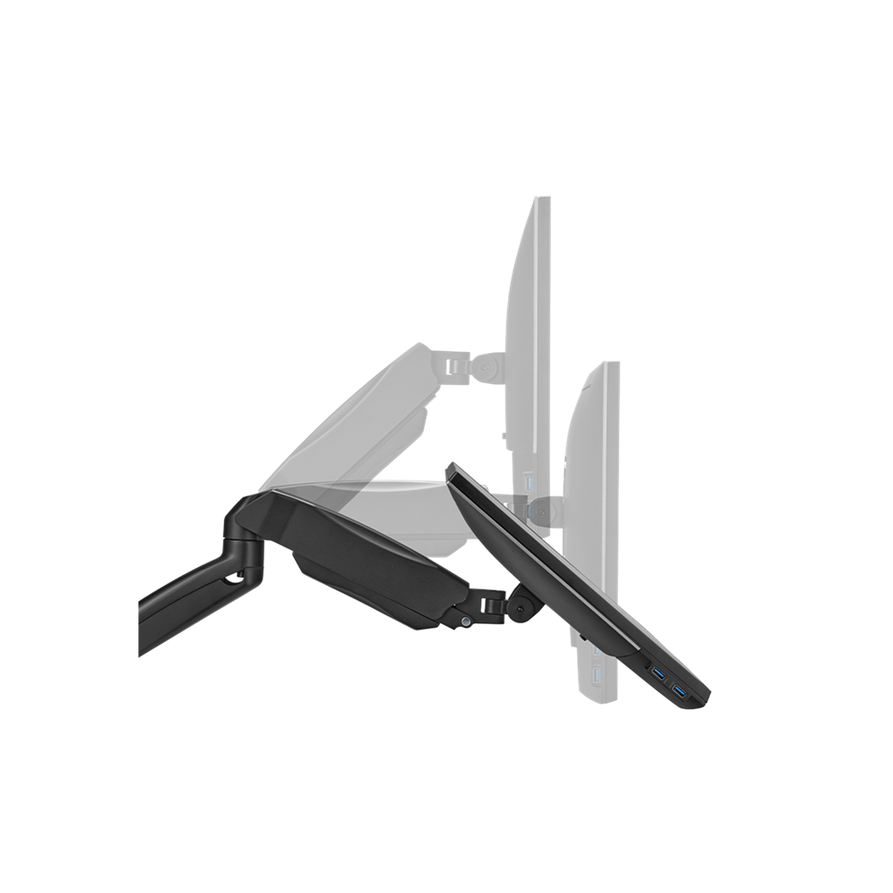 This monitor arm is designed to fit 17″-32″ screens, including curved monitors. It offers a tilt range of +90° to -45°, a swivel range of +90° to -90°, and a screen rotation range of +180° to -180°. With an arm full extension of 450mm (17.7″), you can easily adjust your monitor to the perfect position for maximum comfort and productivity.