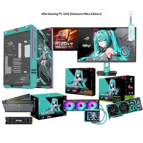 - Alfa Gaming PC 1242 (Hatsune Miku Edition), AMD 9800X3D, 16GB RTX5080, 32GB RAM, 1TB M.2 SSD, ROG Strix Helios II, W11Pro