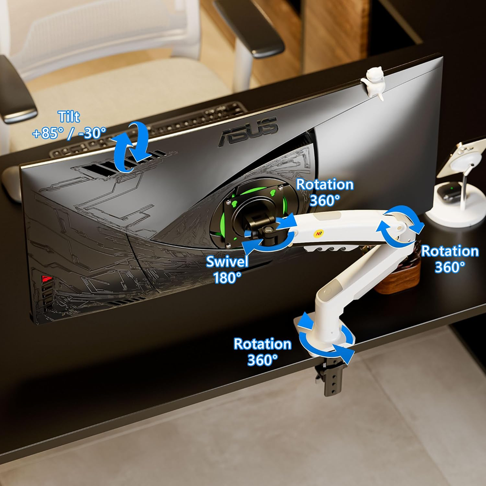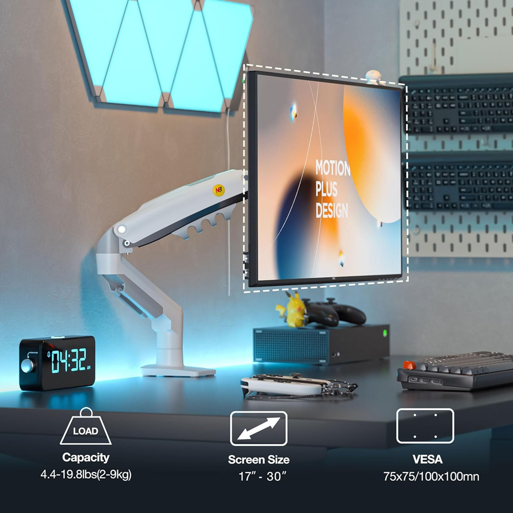 NB F80-XE Single Monitor 17″ – 32″ Arm Desk Mount Table Stand Full Motion Flat, 2-9 KG (White)