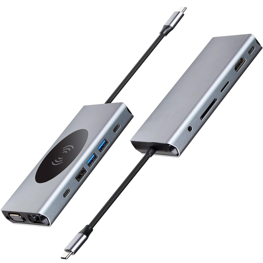 13 Port USB-C Multiport Hub Docking Station, HDMI, VGA, LAN, Card Reader, Wireless Charging