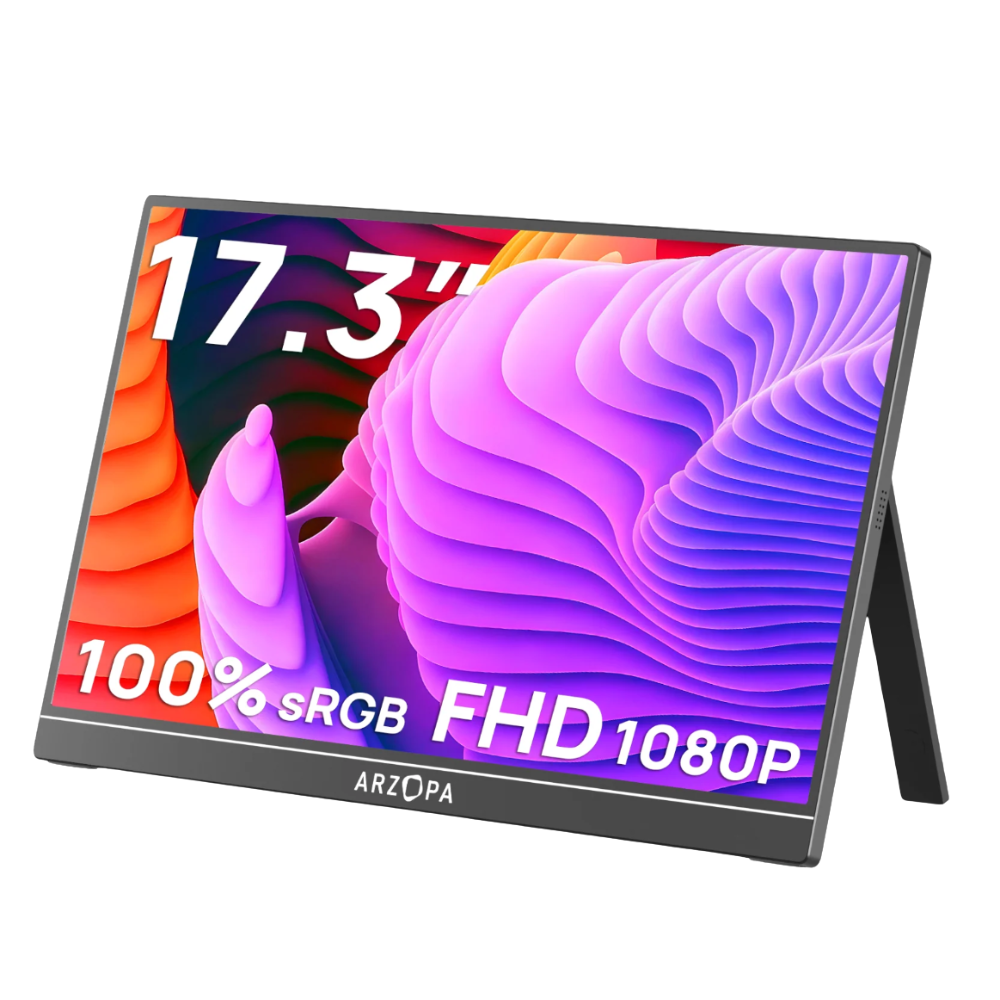 - Arzopa 17.3″ A1M FHD IPS Speakers, Mini HDMI, USB-C Portable Monitor