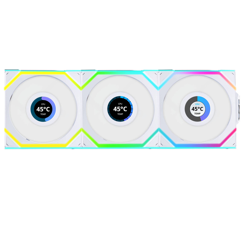 Lian Li UNI FAN SL Wireless LCD 120 ARGB 120mm Fan Reverse Blade – White (3-Pack)