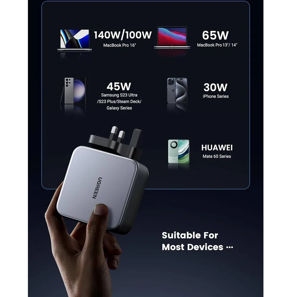 UGREEN 140W GaN Wall Charger Hyper Fast MacBook Pro Charger 3-in-1 Multi-port Laptop Charger